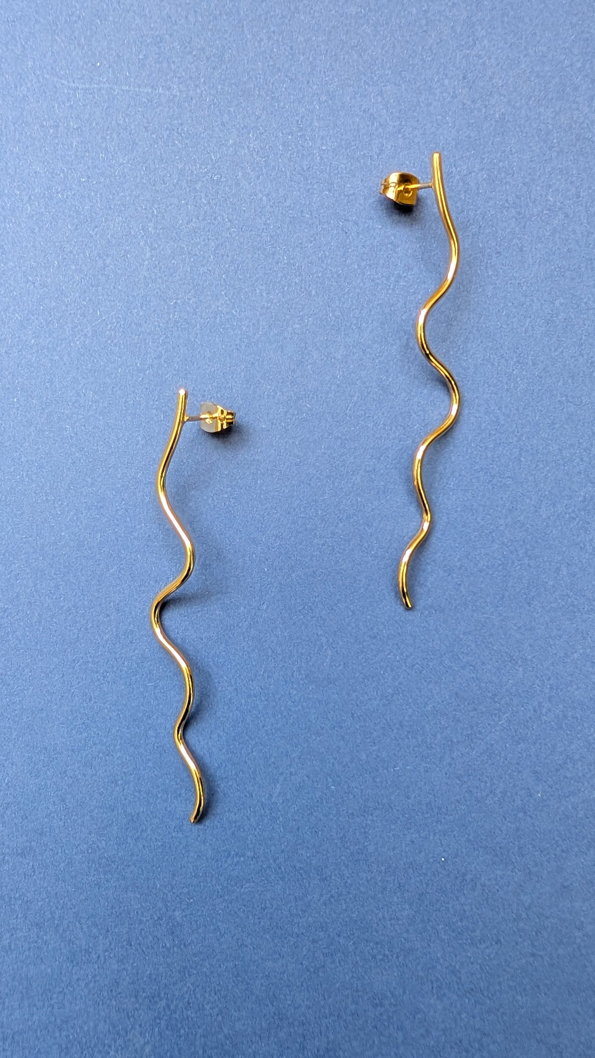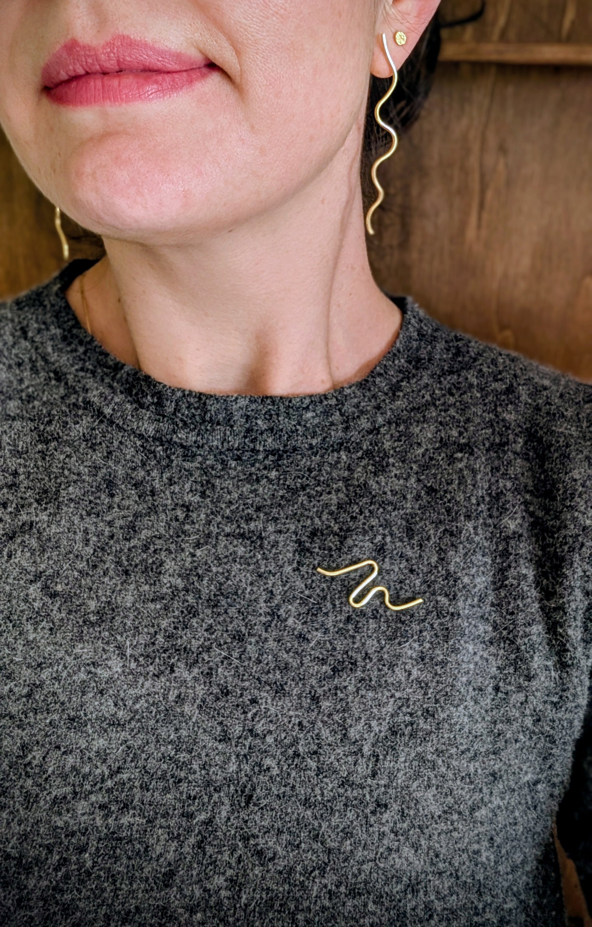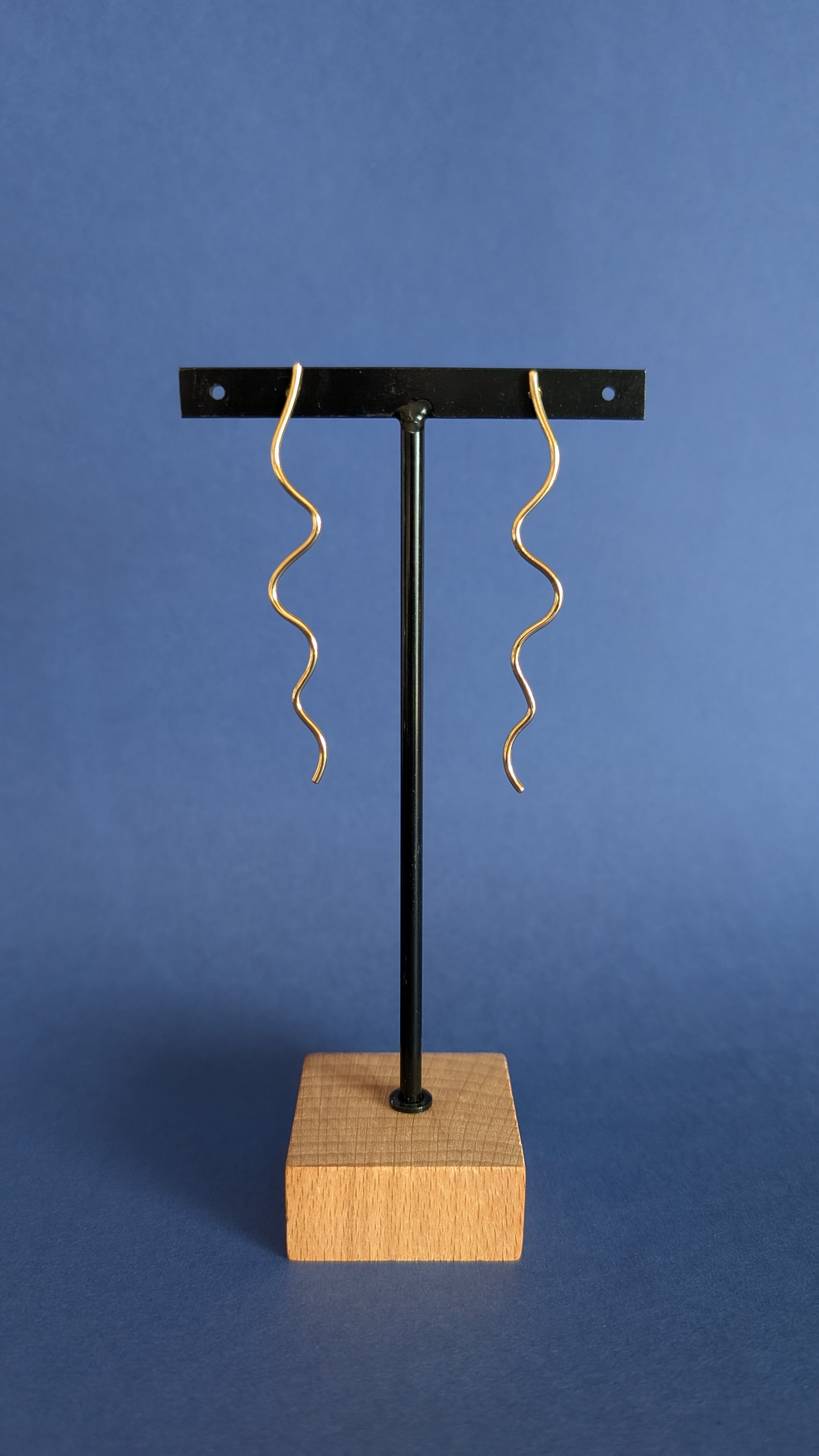 Je travaille à partir de fil de laiton que je forme, soude et poli avant d'envoyer chaque pièce à mon super doreur. Il se charge d'y déposer de l’or fin (24 carats) sur une épaisseur de 2 microns, ce qui permet une très bonne tenue dans le temps.