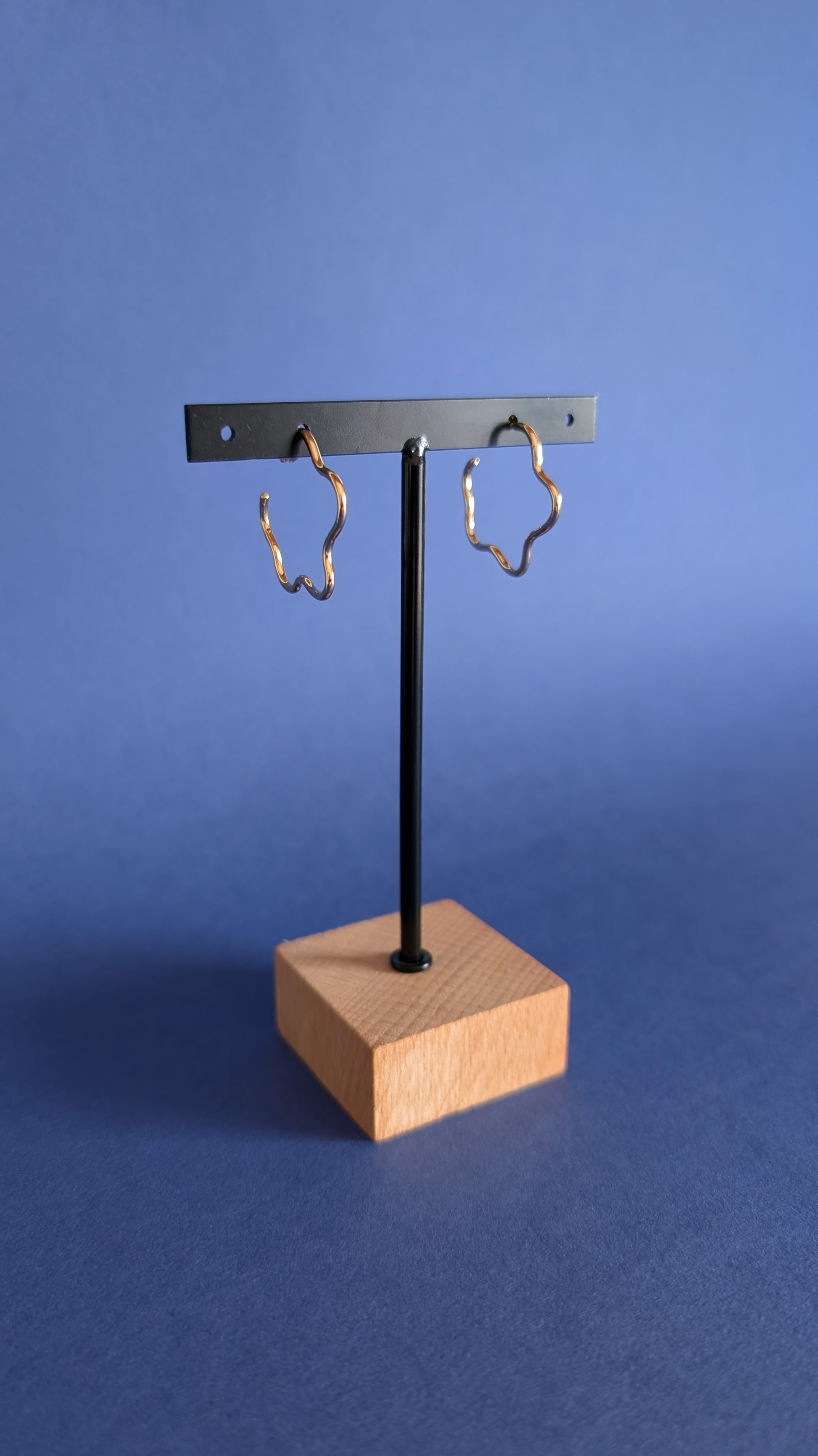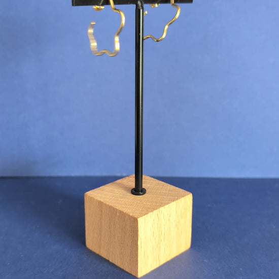 Je travaille à partir de fil de laiton que je forme, soude et poli avant d'envoyer chaque pièce à mon super doreur. Il se charge d'y déposer de l’or fin (24 carats) sur une épaisseur de 2 microns, ce qui permet une très bonne tenue dans le temps.